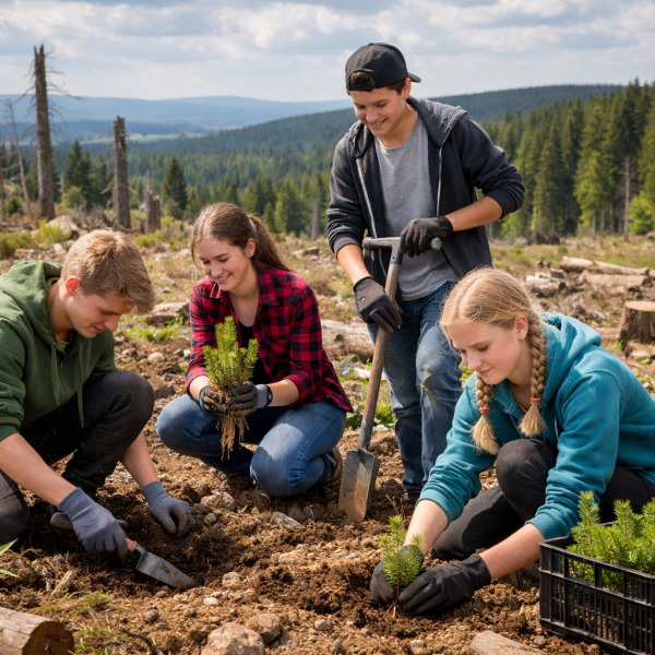 Die Evangelische Jugend in der Landeskirche Braunschweig bietet am 31.03.2026 von 9 bis 18 Uhr eine Baumpflanzaktion im Stadtforst Goslar. Gemeinsam wollen wir Bäume pflanzen, um den CO²-Verbrauch unserer Jugendkammerveranstaltungen auszugleichen.